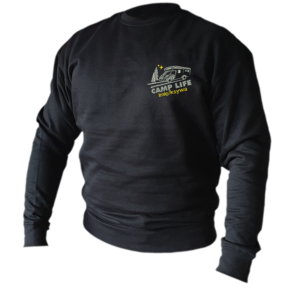 Bluza z wybraną grafiką oraz własnym tekstem (wybrane wzory), całość wykonana techniką haftu komputerowego. Haft umiejscowiony na sercu oraz na plecach.