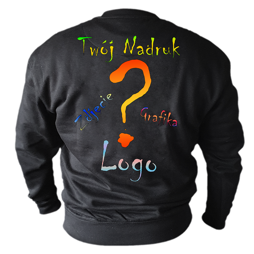 Oferujemy możliwość zaprojektowania i zakupu bluzy z własnym nadrukiem z tyłu bluzy. Nadruk wykonany jest techniką DTF/FLEX. Dzięki zastosowaniu tych technologii jesteśmy w stanie odzwierciedlić 1:1 przesłaną grafikę i nanieść ją na wygodną, przyjemną w użytkowaniu bluzę. Grafiką może być zdjęcie rodziny wykonane aparatem/telefonem, logotyp firmy z dodatkowymi napisami uzgodnionymi na etapie projektowania nadruku czy też dowolna grafika.