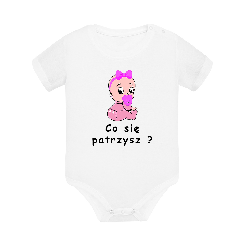 Body dziecięce z krótkim rękawem, śmieszny nadruk na froncie, fajny pomysł na prezent / wyprawkę dla niemowlaka i nie tylko.