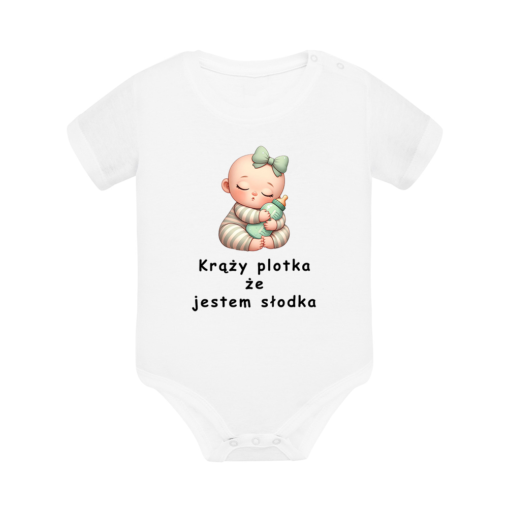 Body dziecięce z krótkim rękawem, śmieszny nadruk na froncie, fajny pomysł na prezent / wyprawkę dla niemowlaka i nie tylko.