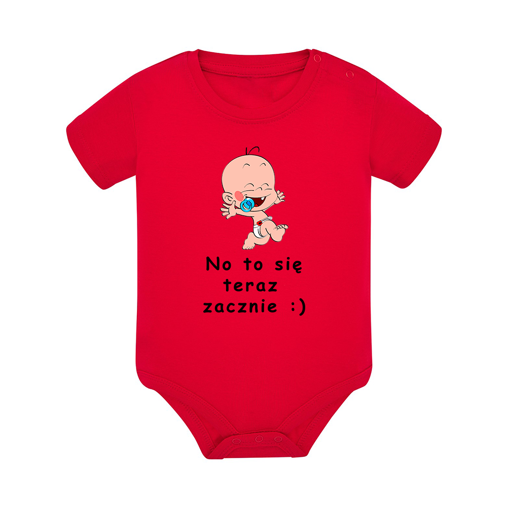 Body dziecięce z krótkim rękawem, śmieszny nadruk na froncie, fajny pomysł na prezent / wyprawkę dla niemowlaka i nie tylko.