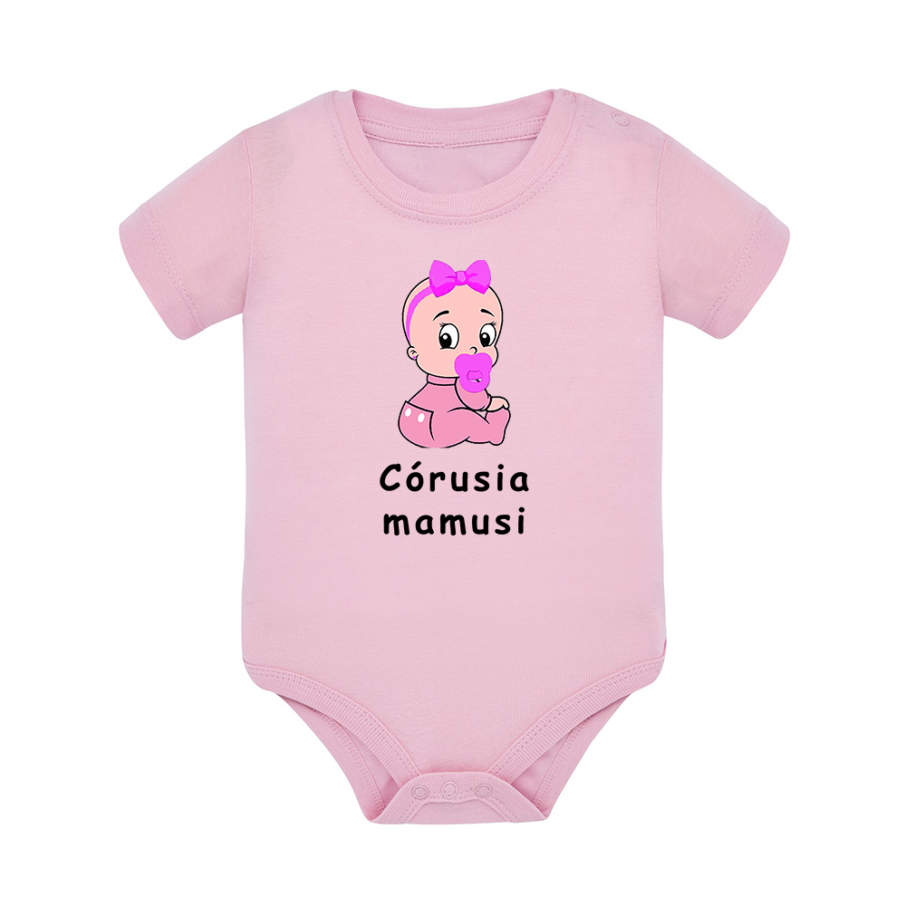 Body dziecięce z krótkim rękawem w kolorze jasny róż nadruk N0038