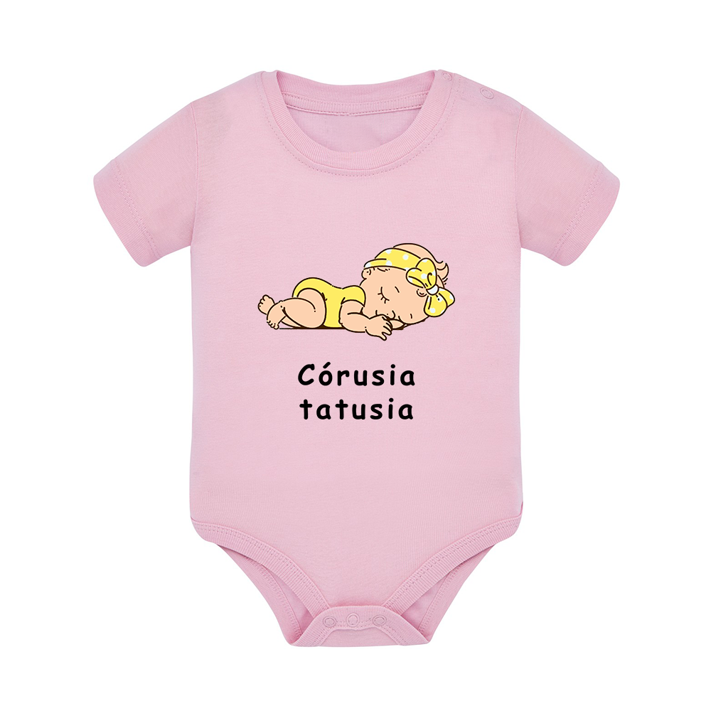 Body dziecięce z krótkim rękawem w kolorze jasny róż nadruk N0060