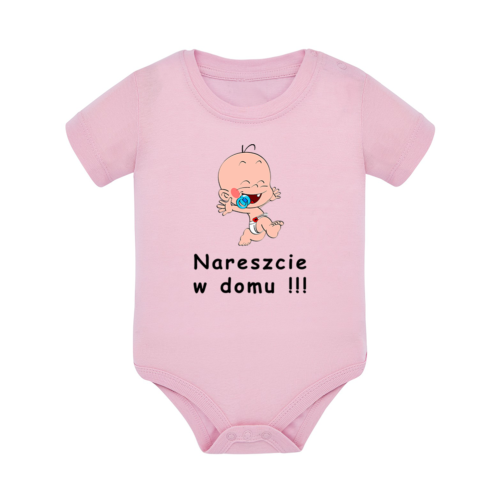 Body dziecięce z krótkim rękawem w kolorze jasny róż nadruk N0069