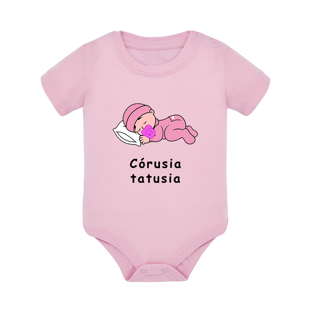 Body dziecięce z krótkim rękawem w kolorze jasny róż nadruk N0092