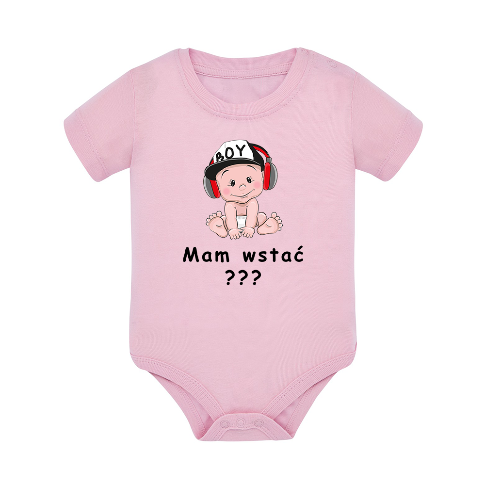 Body dziecięce z krótkim rękawem w kolorze jasny róż nadruk N0106