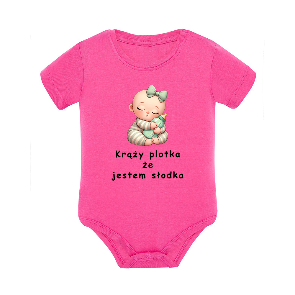 Body dziecięce z krótkim rękawem w kolorze różowym nadruk N0074