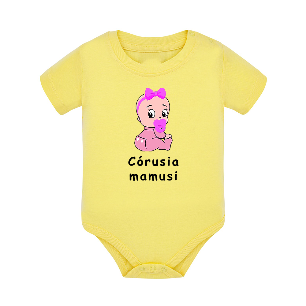 Body dziecięce z krótkim rękawem w kolorze żółtym nadruk N0038