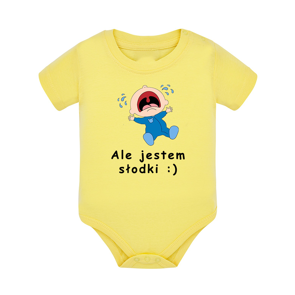 Body dziecięce z krótkim rękawem, śmieszny nadruk na froncie, fajny pomysł na prezent / wyprawkę dla niemowlaka i nie tylko.