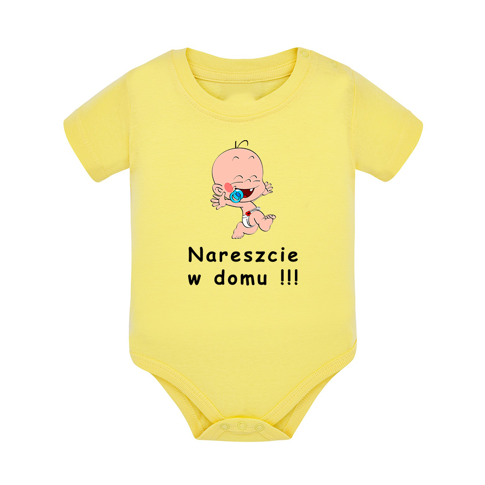 Body dziecięce z krótkim rękawem w kolorze żółtym nadruk N0069