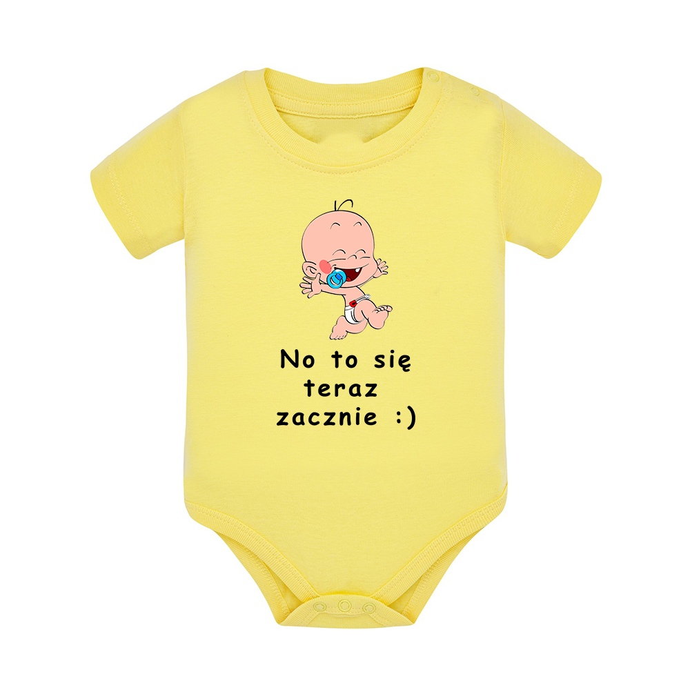 Body dziecięce z krótkim rękawem, śmieszny nadruk na froncie, fajny pomysł na prezent / wyprawkę dla niemowlaka i nie tylko.