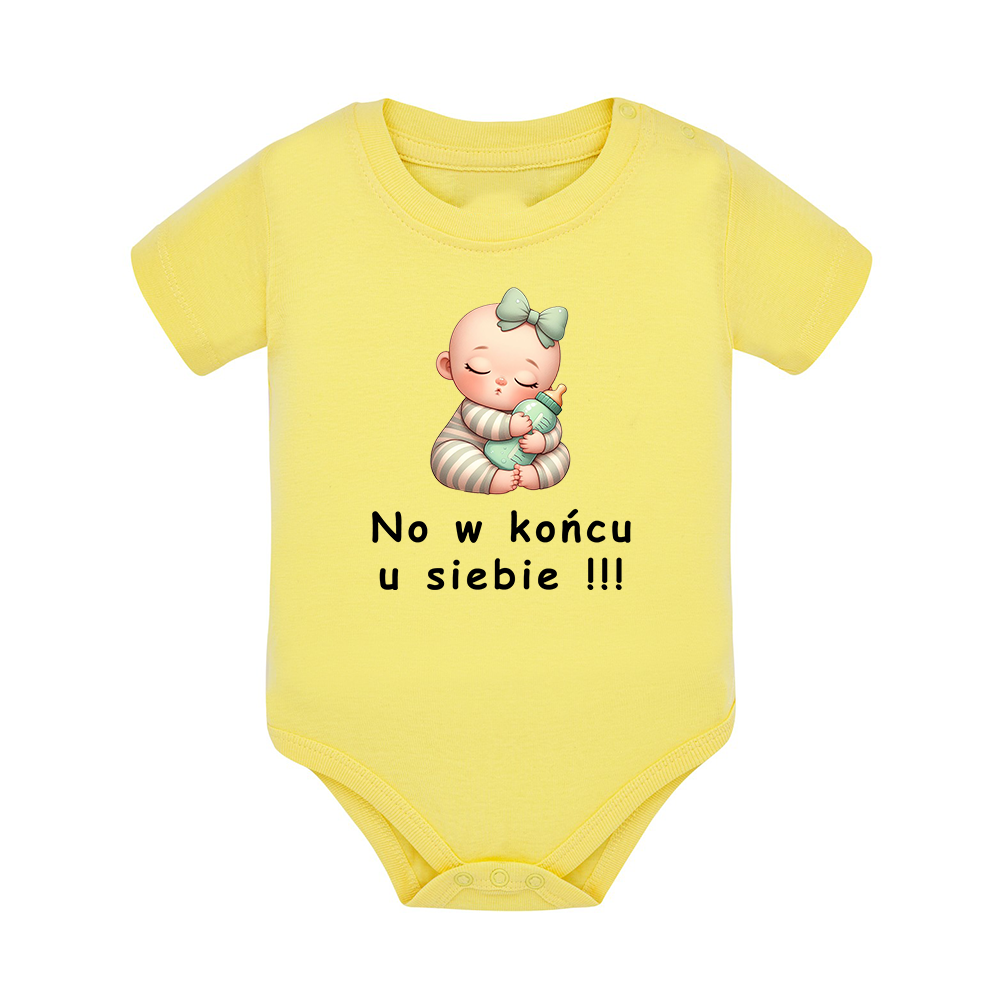 Body dziecięce z krótkim rękawem w kolorze żółtym nadruk N0079