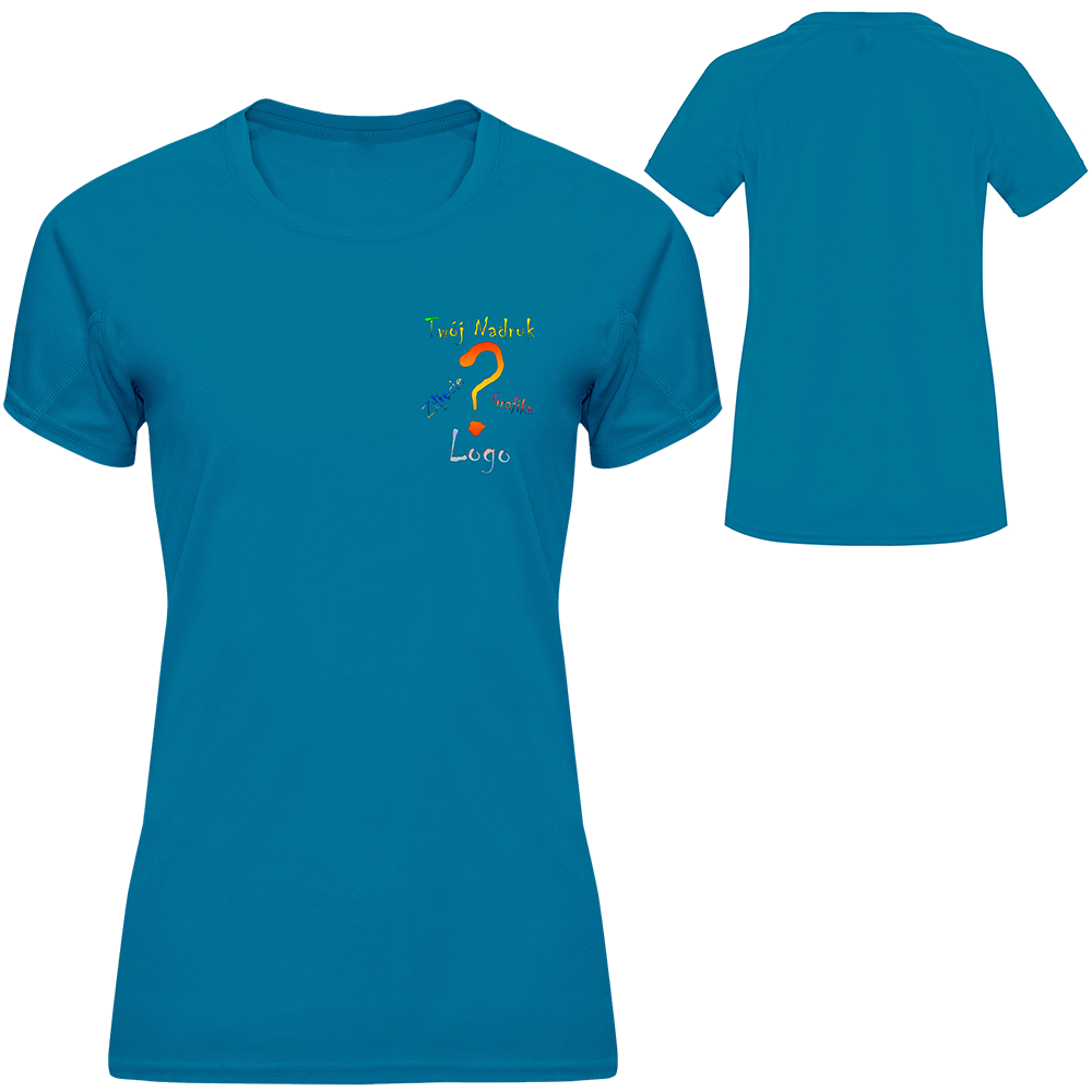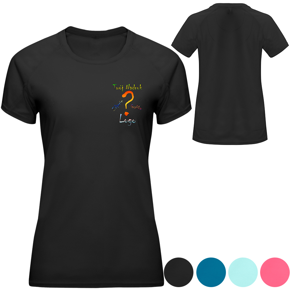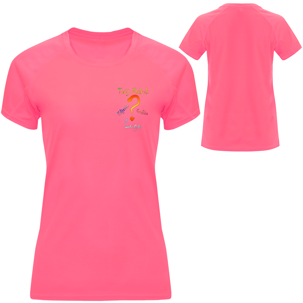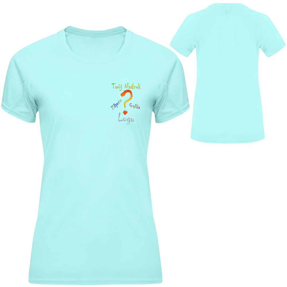 Koszulka sportowa damska lekka oddychająca z nadrukiem własnego wzoru logo na sercu