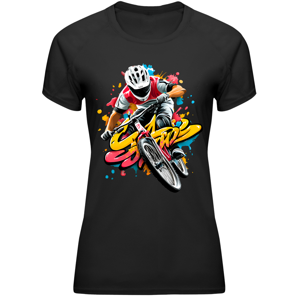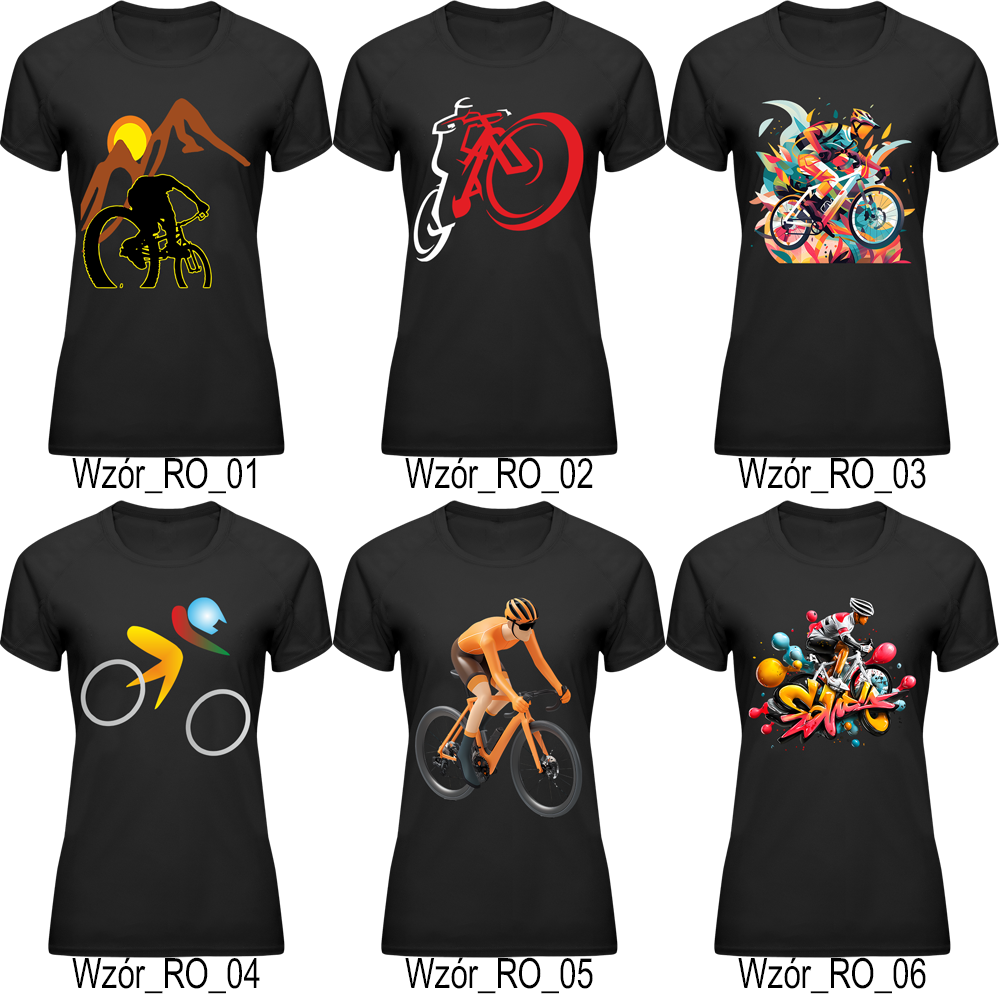 Koszulka sportowa damska na rower lekka oddychająca szybkoschnąca nadruki