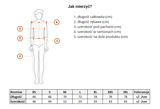 - Tył koszulki nieco dłuższy niż przód.