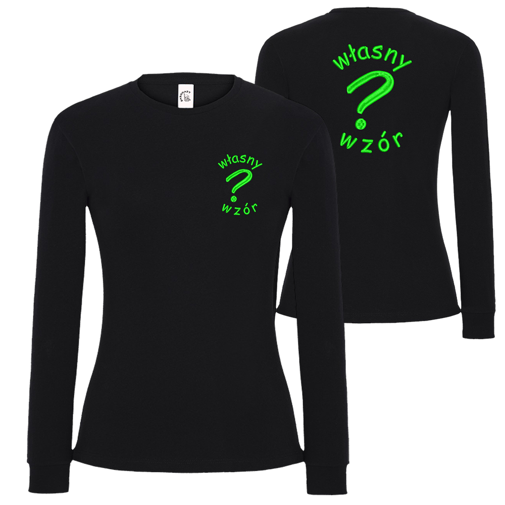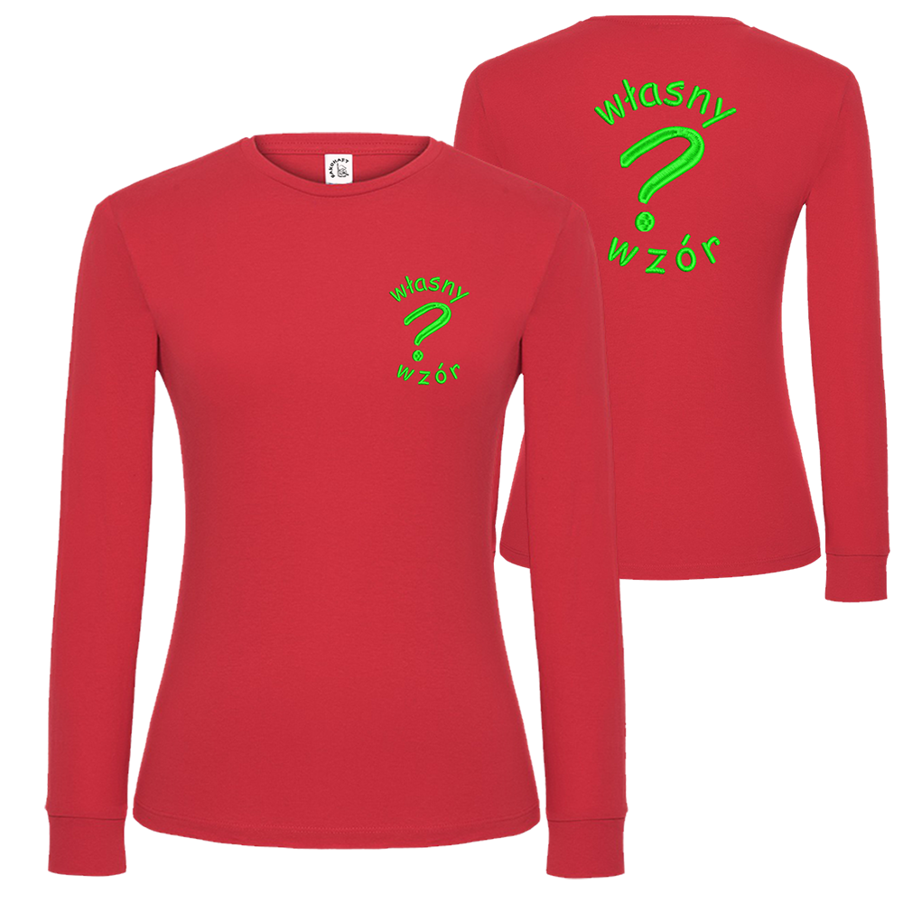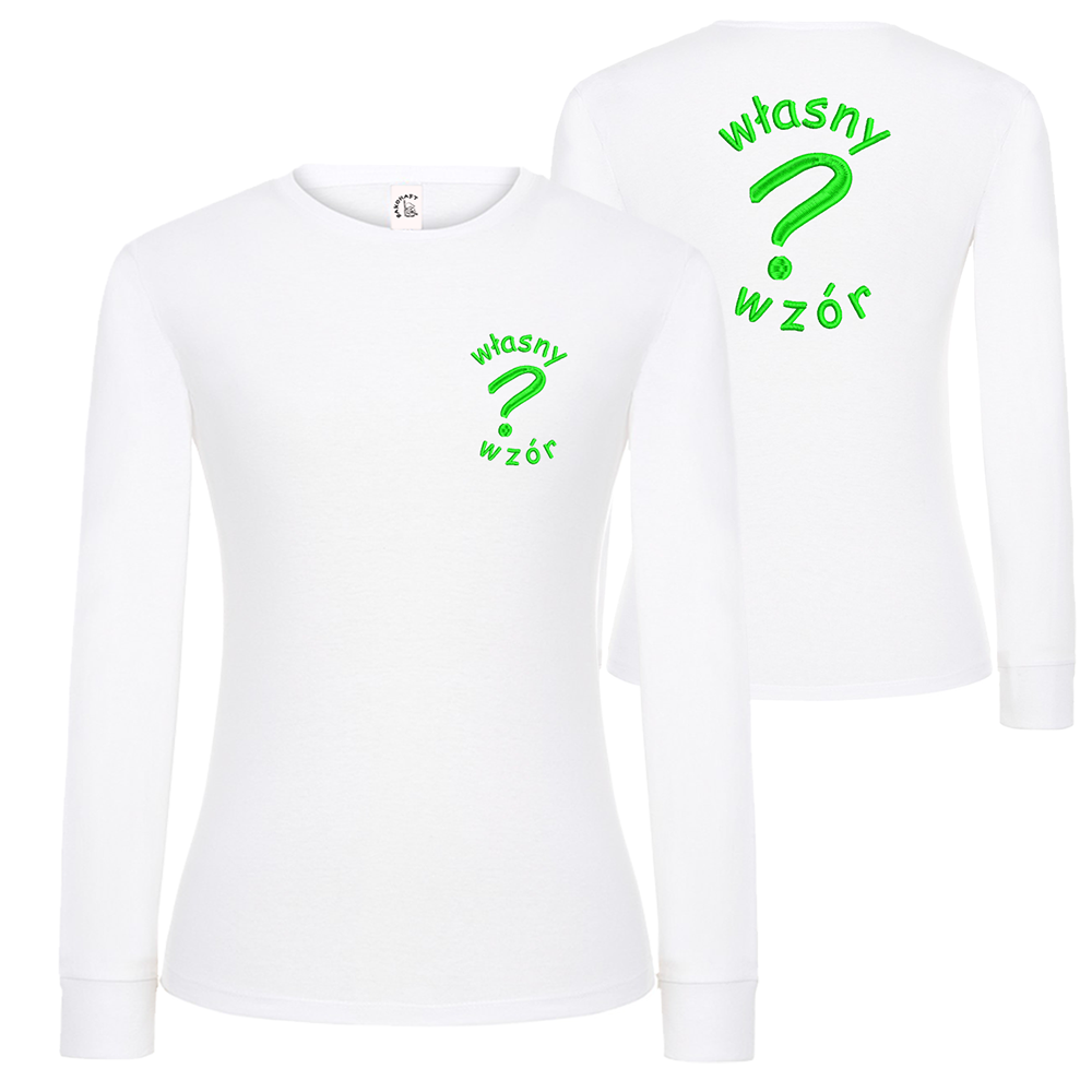 T-shirt damski z długim rękawem z haftem własnego logotypu serce/plecy